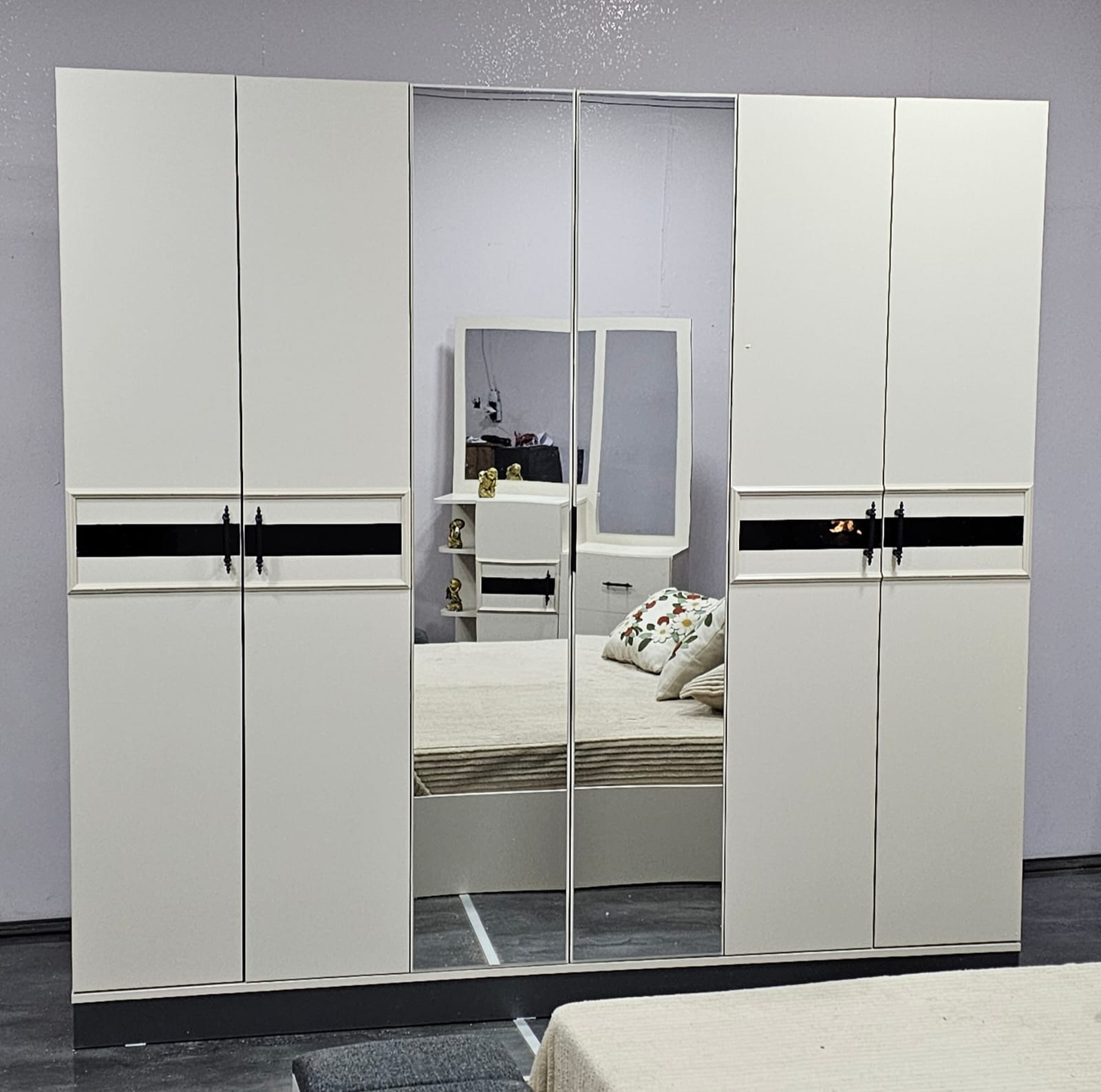 CHAMBRE A COUCHER 6BATTANTS 4PIECES BLANC GRIS DIDIM