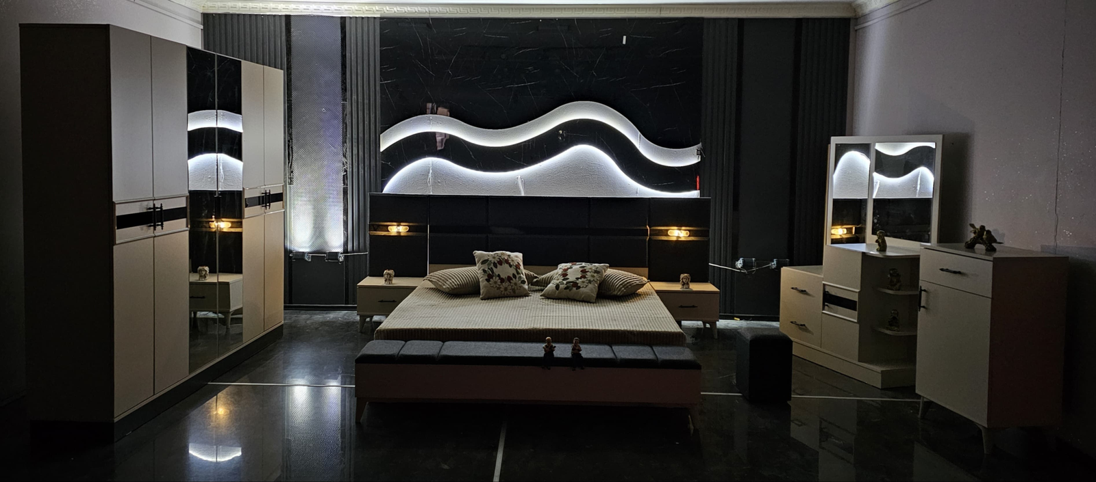 Lit : 180×200 / 2 table de chevet / Coiffeuse
