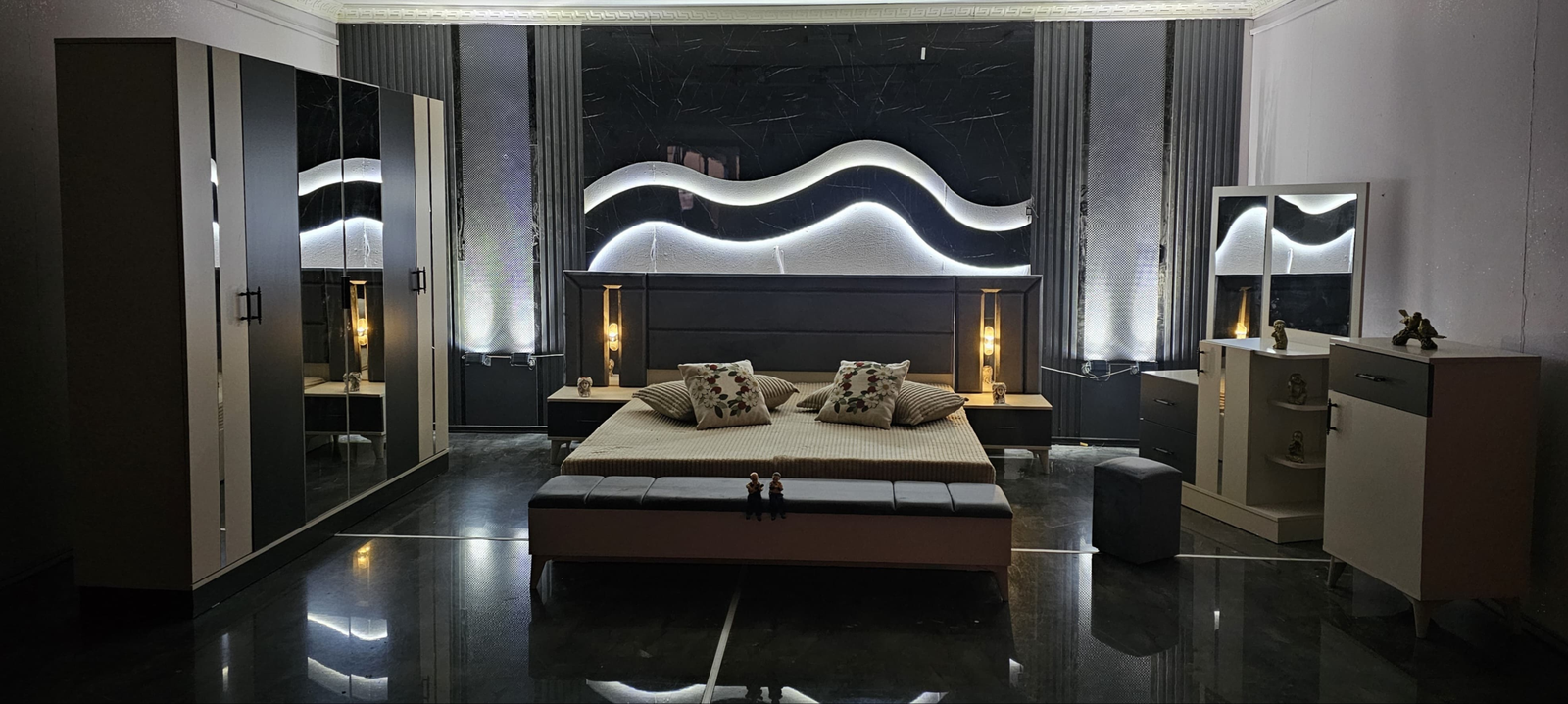 CHAMBRE A COUCHER 6BATTANTS 4PIECES BLANC GRIS FELICITA