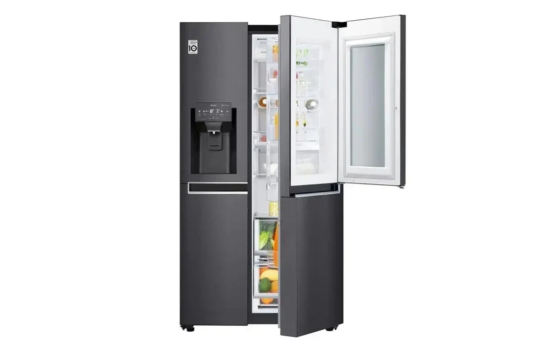 REFRIGERATEUR LG SIDE BY SIDE AVEC FONTAINE MATTE NOIR KNOCK KNOCK GCX257 CQVV